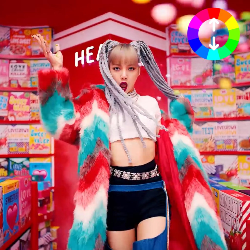 Los videoclips también combinan con excelencia la paleta cromática para crear grandiosas armonías o perfectos contrastes. Por ejemplo, la escena completamente azul con sofá amarillo (colores complementarios) de ‘Boy with luv’ de BTS, o la escena en la tienda roja y azul de ‘Kill this love’ de BLACKPINK: