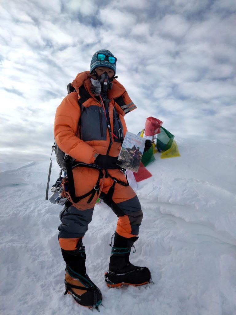 Nuestro libro Sherpas. La otra historia del Himalaya ha llegado a la cima del K2, la segunda montaña más alta del mundo, gracias a la generosidad de nuestro amigo y extraordinario alpinista Karma Geljen Sherpa.