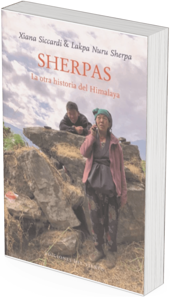 ‘SHERPAS. La otra historia del Himalaya’ (Ediciones del Viento) es una obra creada por la periodista Xiana Siccardi y el guía de expediciones y trekkings Lakpa Nuru Sherpa, a partir de los viajes que se relatan, y que reúne en sus 220 páginas, horas de entrevistas, grabaciones, lecturas, entrevistas, hemeroteca, búsqueda de fotos y libros descatalogados.